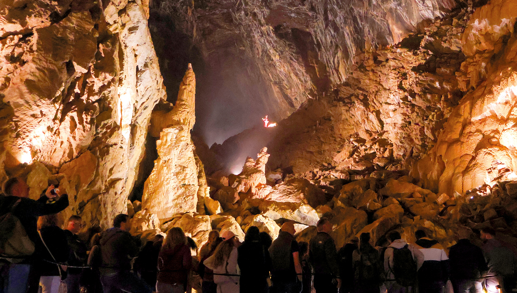 Chaque visite inclut un spectacle son et lumière, mettant en valeur les formations naturelles et créant une expérience immersive unique. Jeux de couleurs, ambiances musicales et projections mettent en valeur les reliefs impressionnants de cette cathédrale. Beaucoup de visiteurs la décrivent comme « un moment émouvant, avec les larmes aux yeux », certains disant même que «les photos ne rendent absolument pas justice au gigantisme de cette salle spectaculaire ». « Il faut le voir, le ressentir, lever les yeux et se laisser submerger par la beauté du lieu. » « Une visite spectaculaire et profondément marquante. »